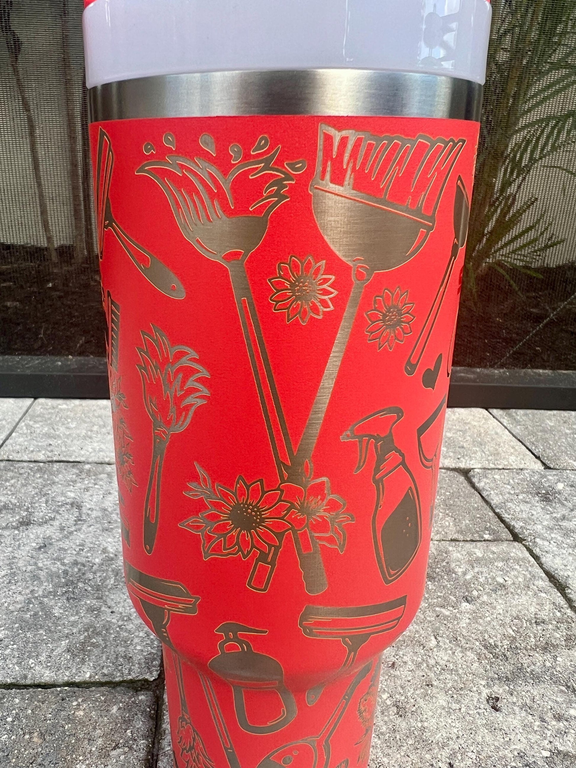 All designs are LASER Engraved, not vinyl and will last forever. Tumblers are brand new and come with lid and straw. The wrap was removed to laser the cup.