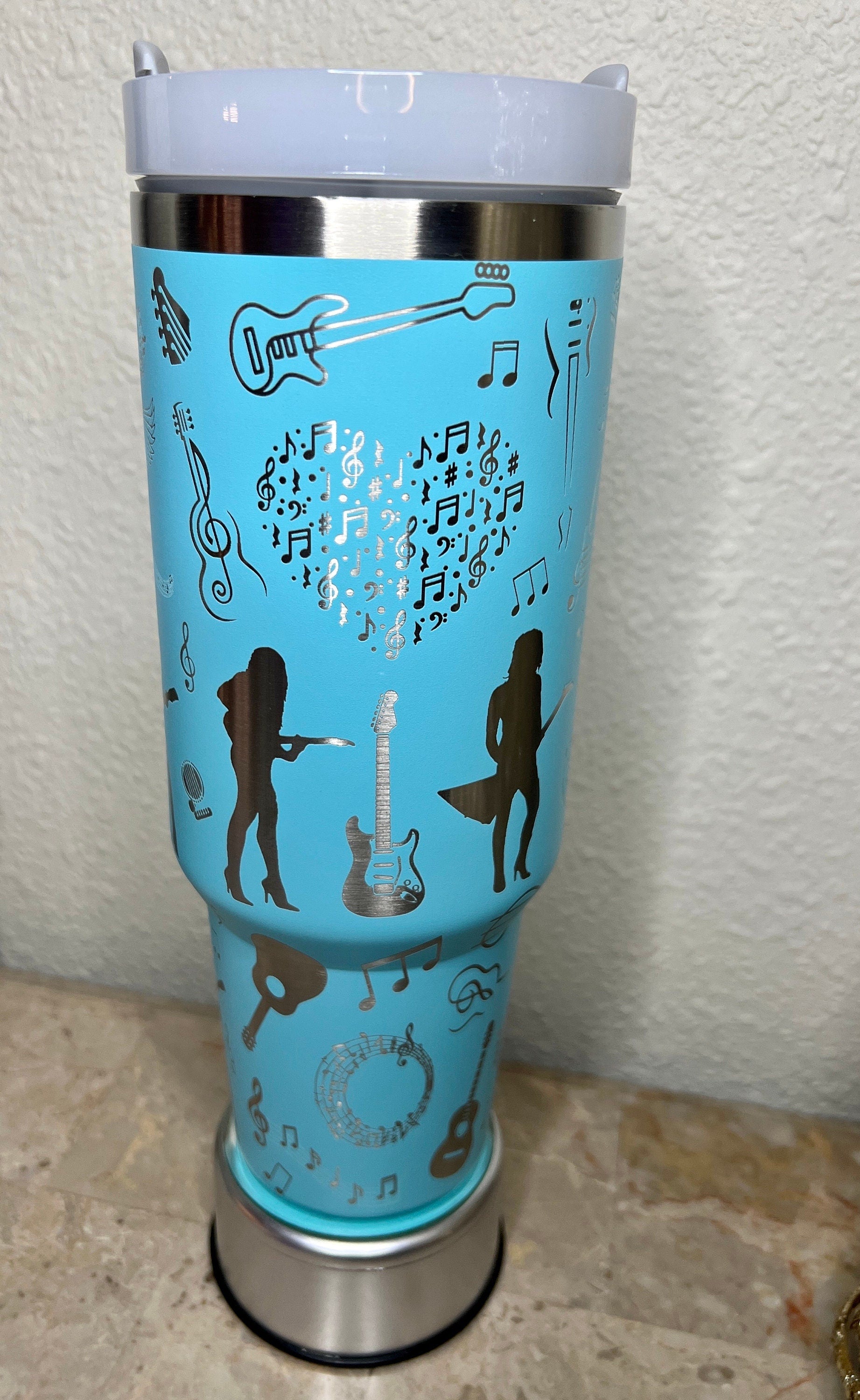 Guitar Tumbler: Engraved 40 Oz Stanley Quencher H2.0 Travel Tumbler
