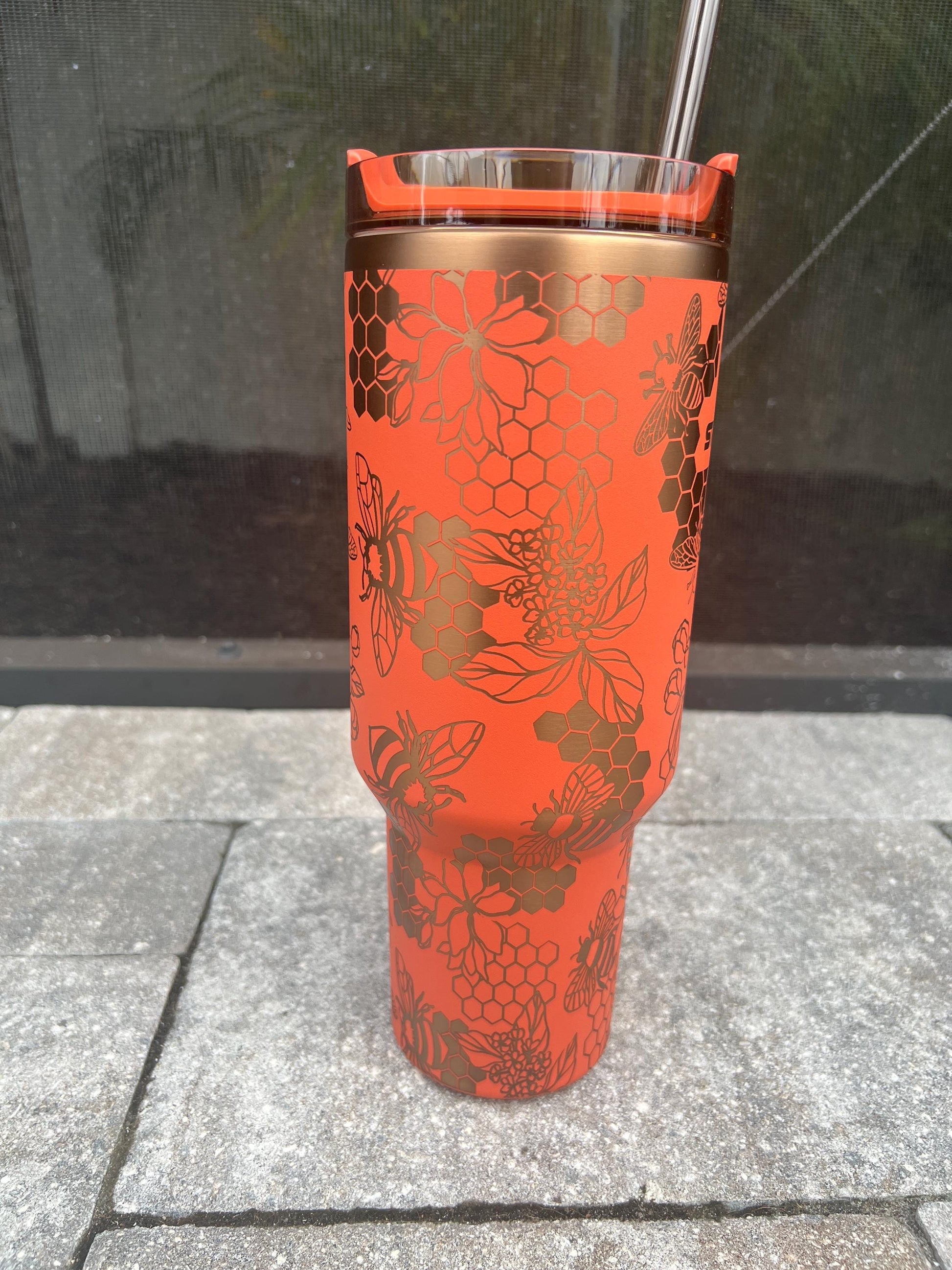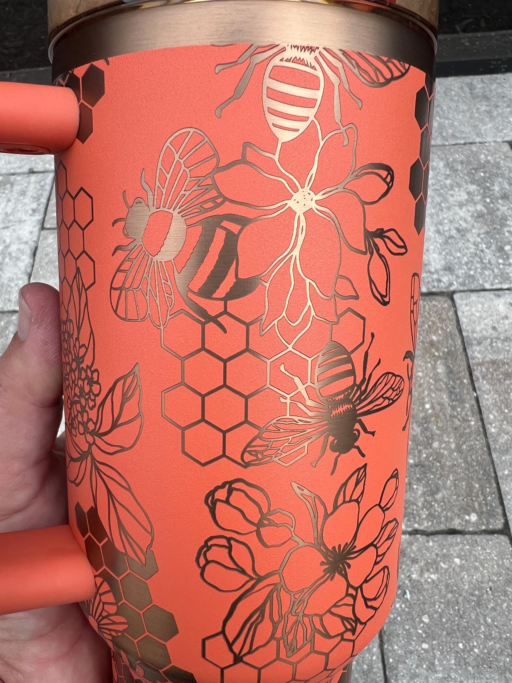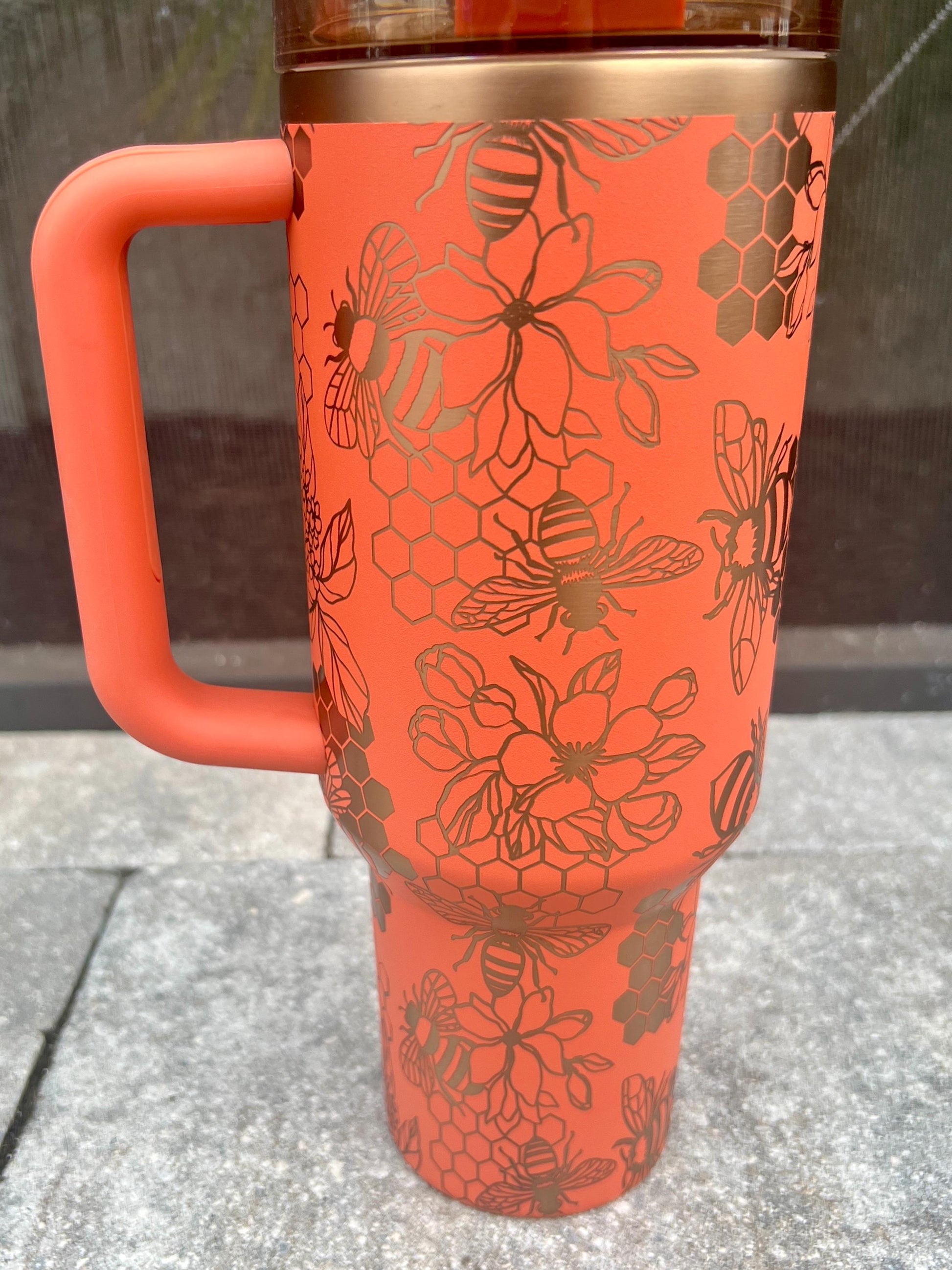 Honey Bee Stanley Quencher: 40oz Laser Engraved Travel Tumbler