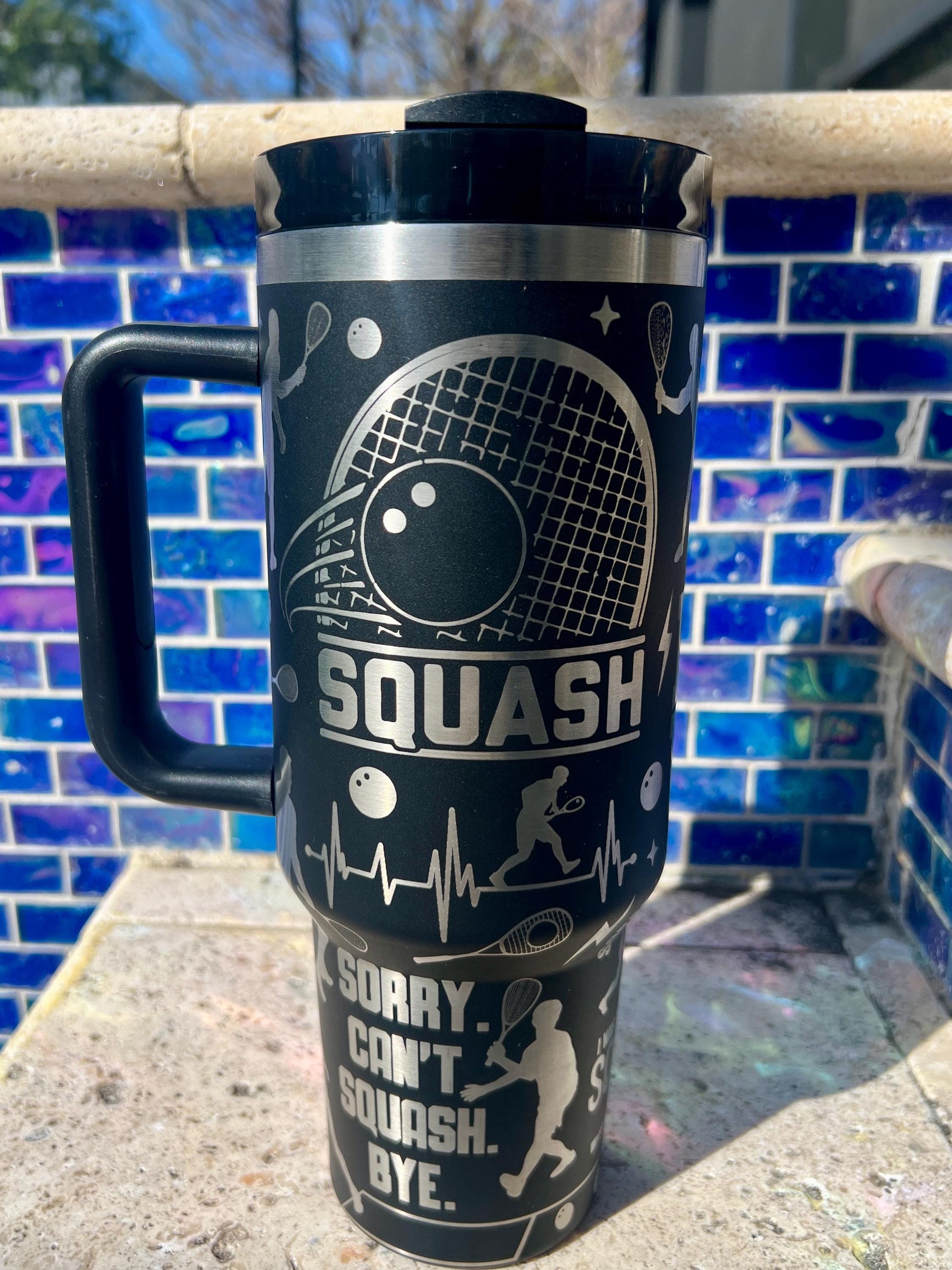 Laser Engraved Squash Travel Tumbler: Personalized 40 Oz Cup