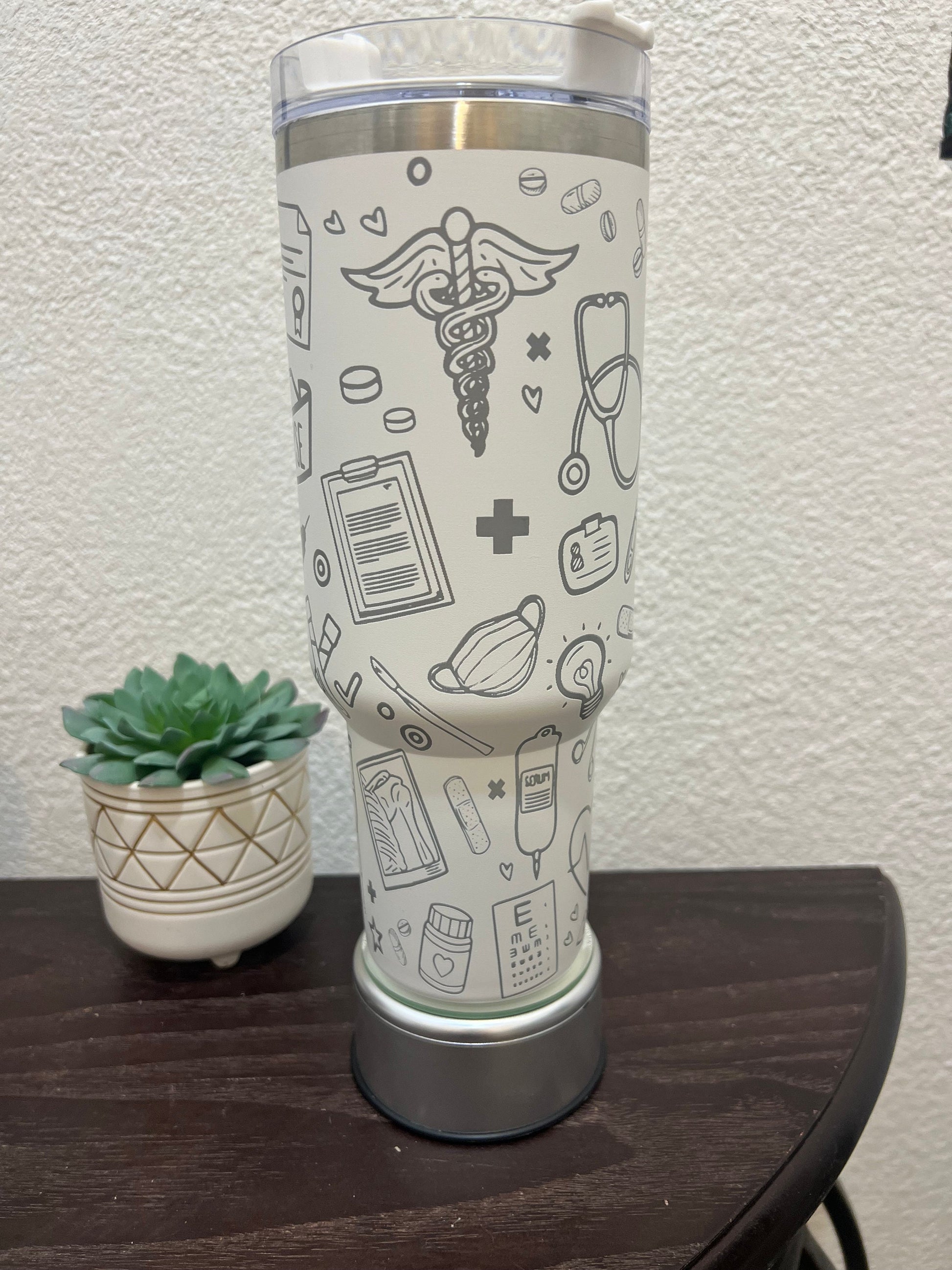 Nurse Life-40 Oz Travel Tumbler with Handle-Full Wrap Laser Engraved