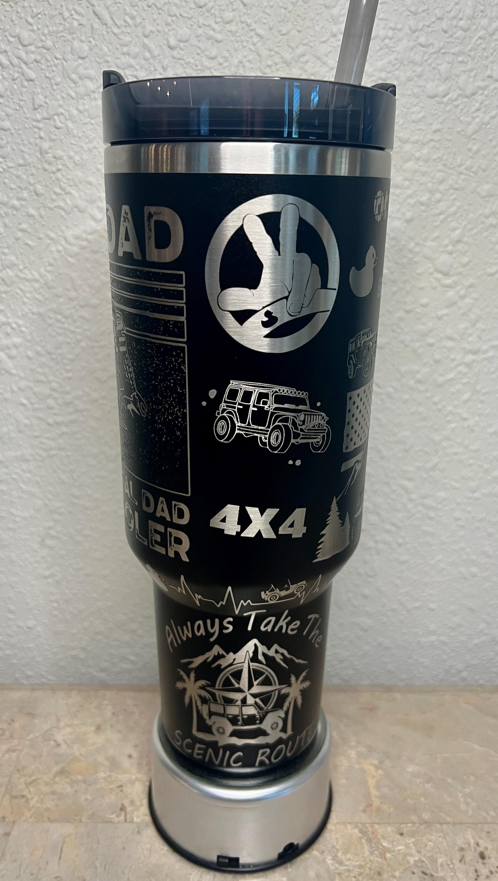 Get ready to add a custom 40 Oz Stanley Quencher H2.0 Travel Tumbler to your off roading adventures. This tumbler features a full wrap engraving with remarkable detail, capturing all the fun of off roading. Perfect for on-the-go sipping, it comes with a sturdy handle and superior insulation to keep your drinks at the ideal temperature. Ideal for fans of the thrill of four wheeling, this tumbler is not just a beverage holder but a piece of art.
